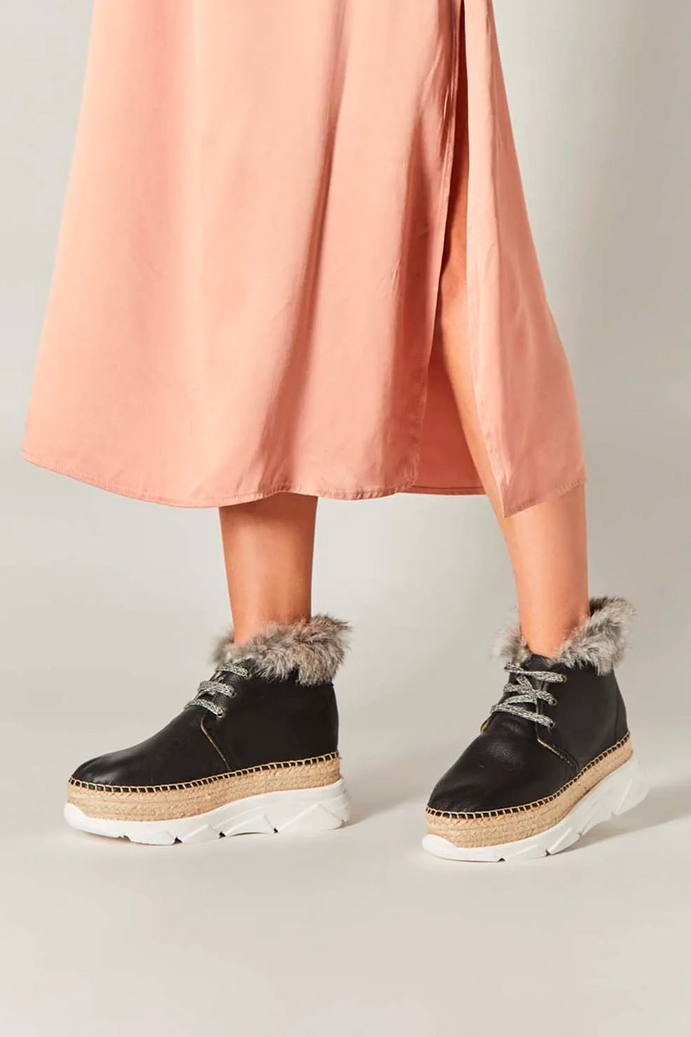 Las suelas llevan yute natural con goma reciclada.Las pieles utilizadas están certificadas por el LeatherWorking Group,una organización cuyo objetivo es un menor impacto medioambiental.