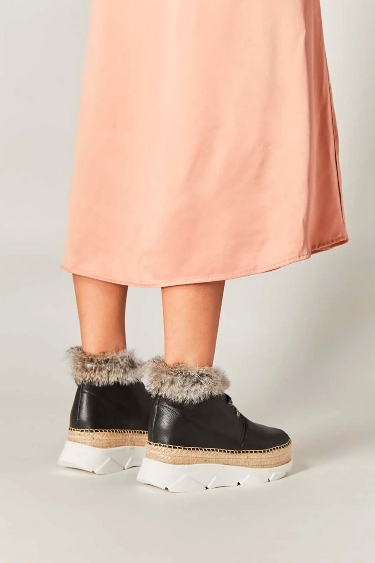 Confeccionadas en piel negra, destacan por su cuello con pelo gris cálido.
