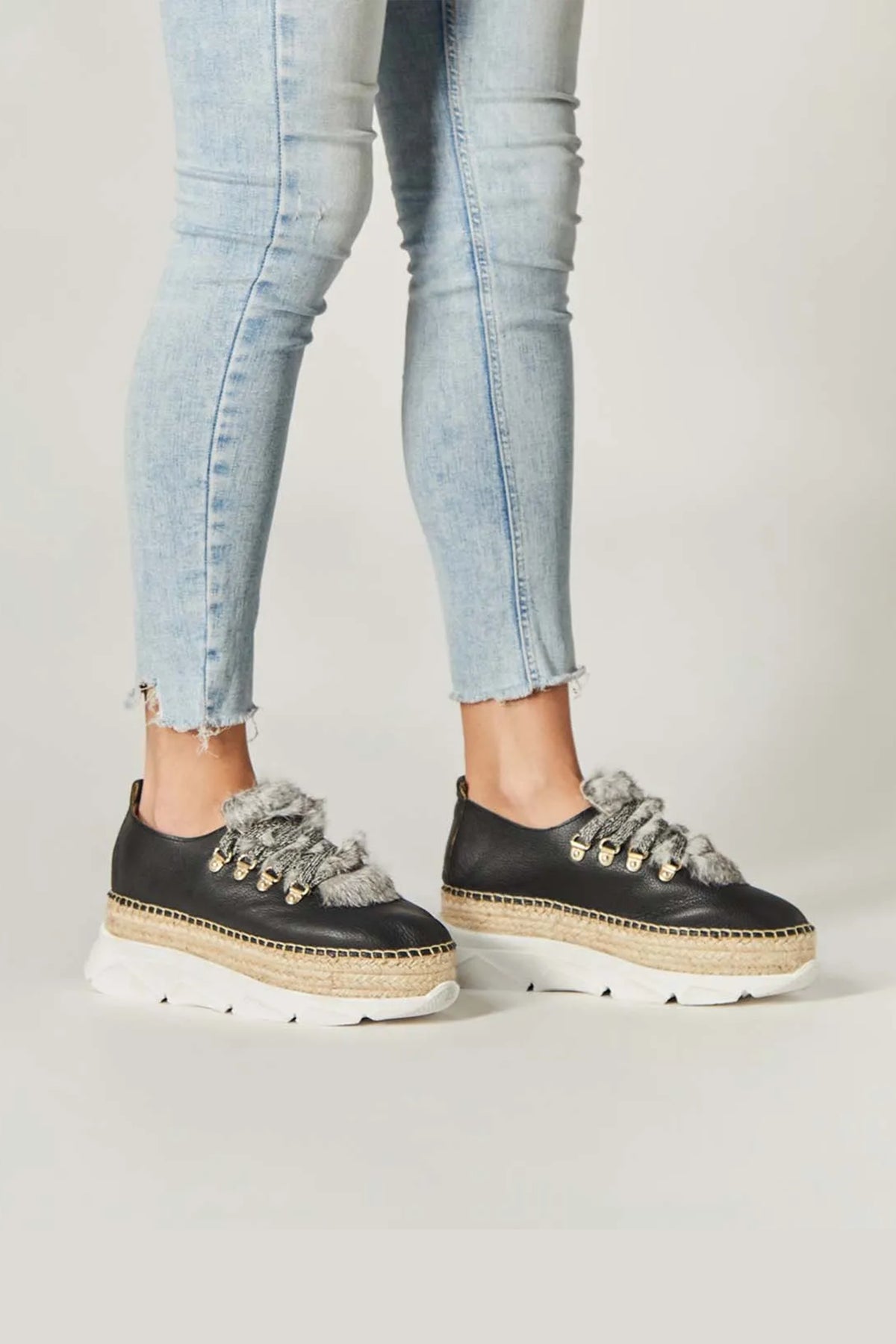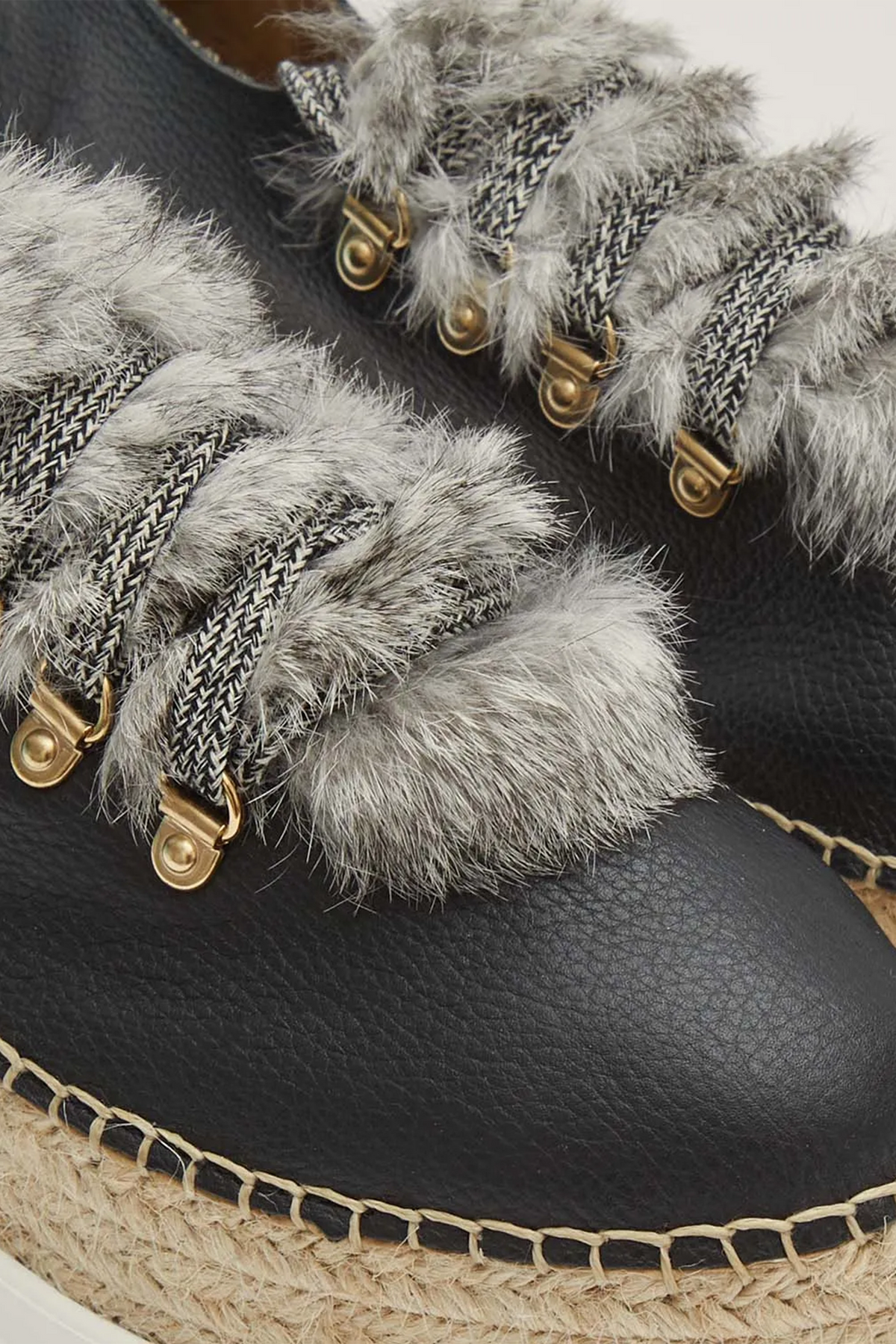 Naos 31 Negro - Sneakers de piel con pelo y suela de yute y goma