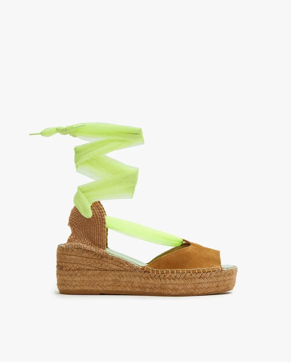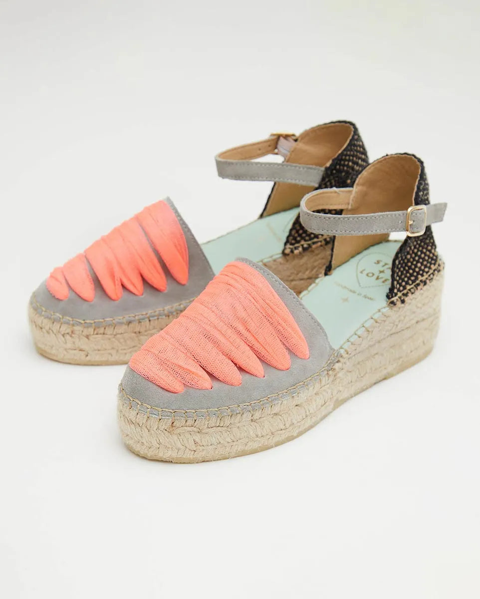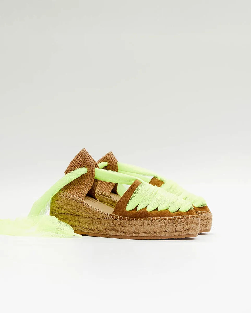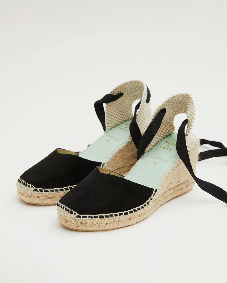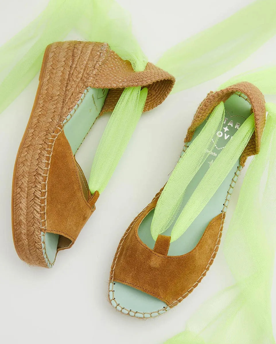 Las suelas llevan yute natural con goma reciclada.Las pieles utilizadas están certificadas por el LeatherWorking Group,una organización cuyo objetivo es un menor impacto medioambiental.