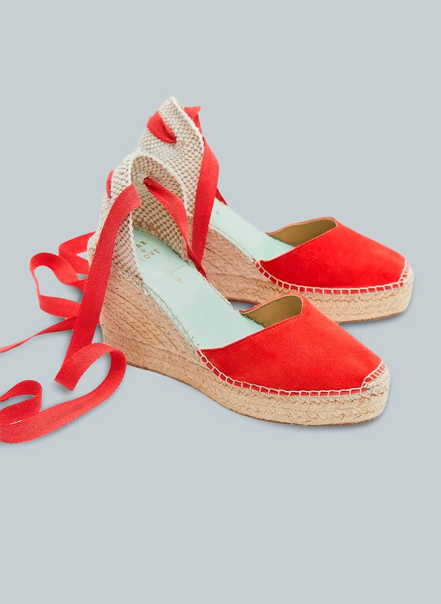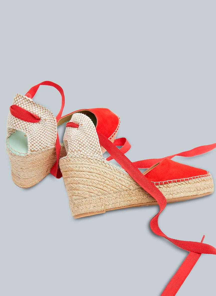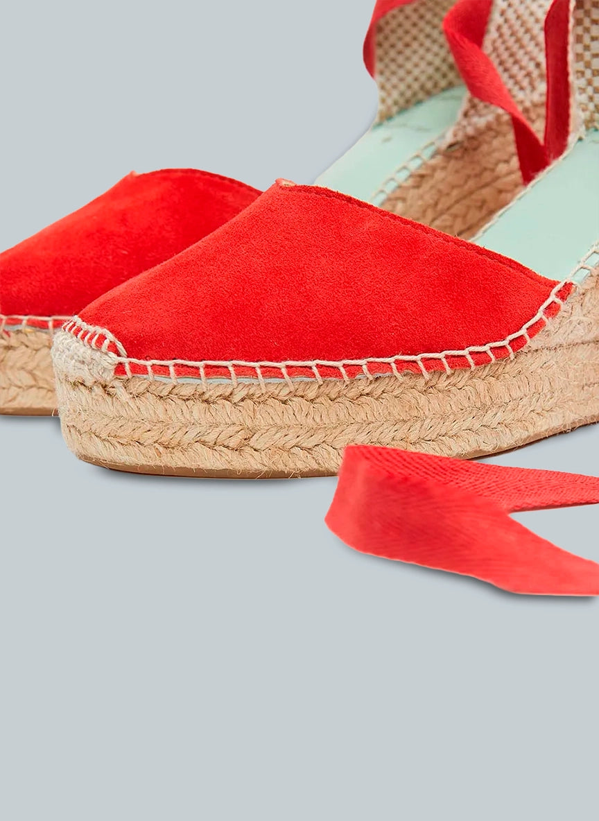 Atrévete a destacar con estas alpargatas rojas con cinta, un diseño femenino y sofisticado que combina tradición artesanal y carácter contemporáneo.