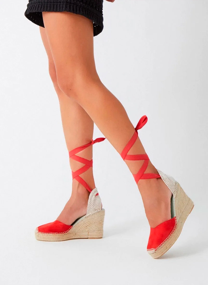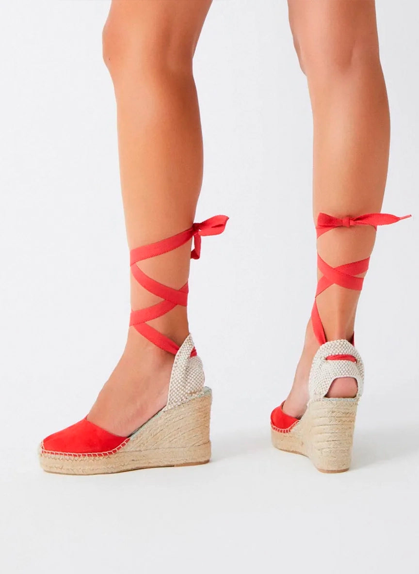 Alpargatas cuña alta con cintas en rojo — Beta Rojo