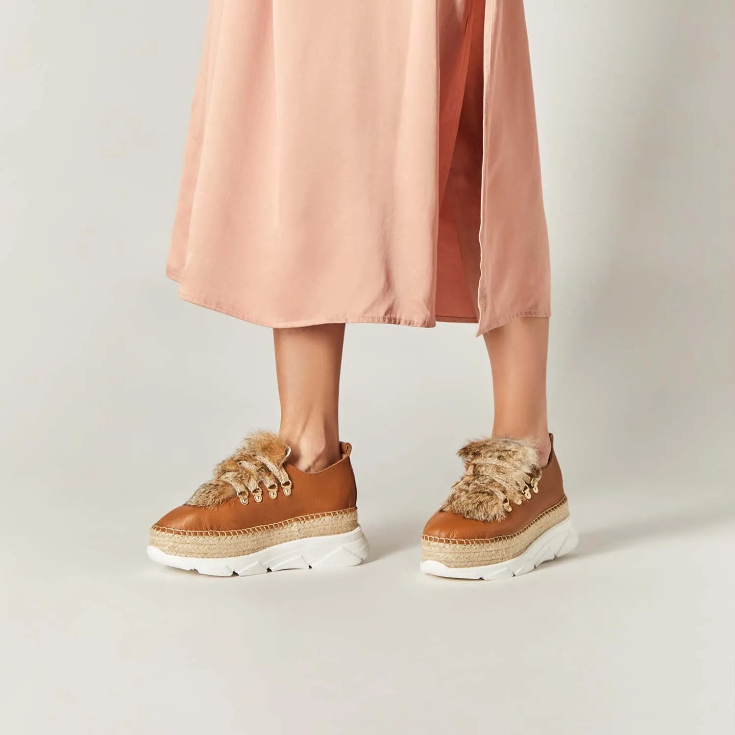 Sneakers de cuero con pelo y suela yute + goma | Naos 31